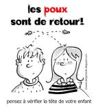 Merci de vérifier les têtes de vos enfants et de traiter et nettoyer toute la literie et les tissus en contact si besoin.